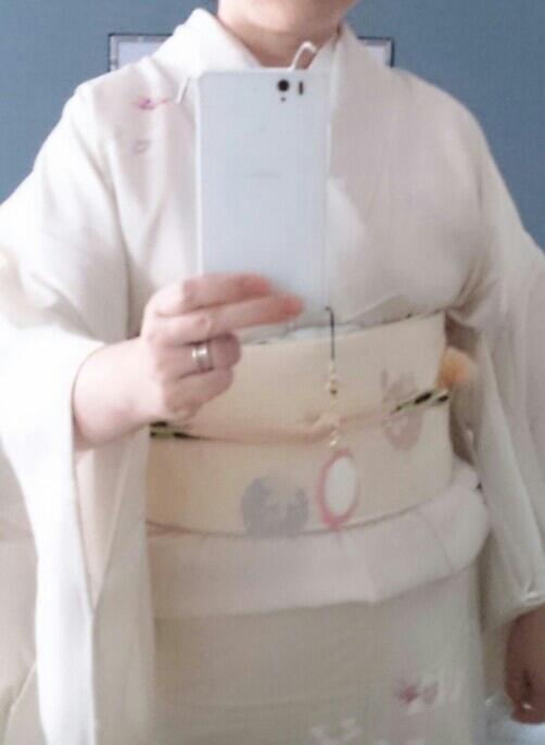 ホテルなので、浴衣とスリッパではだめなので、昨夜きた単の着物を朝から来ていたので、